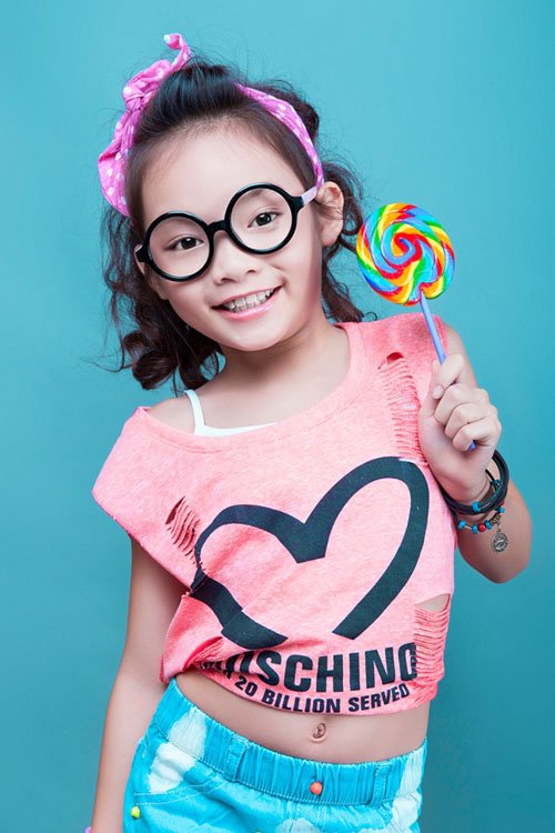 Sở hữu gương mặt đáng yêu, tính cách hài hước và thông minh, Linh Hoa hòa nhập nhanh chóng với không khí buổi chụp, đồng thời luôn sáng tạo với nhiều tư thế ngẫu hứng.