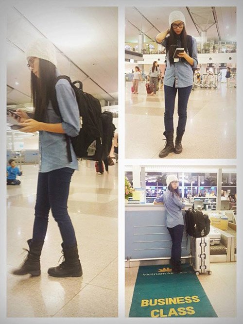 Ngô Thanh Vân cá tính với set đồ denim-on-denim, phối cùng combat boots và mũ beanie. Một set đồ năng động, trẻ trung, phù hợp để mặc khi phải di chuyển.