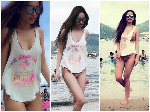 Áo ba lỗ khoét rộng nách cũng là món đồ rất tuyệt vời để kết hợp cùng bikini khi đi biển.