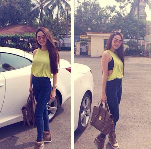 Những cô nàng táo bạo như chân dài Ngọc Quyên sẽ không ngại ngùng chọn áo ngực màu chóe nổi bật.