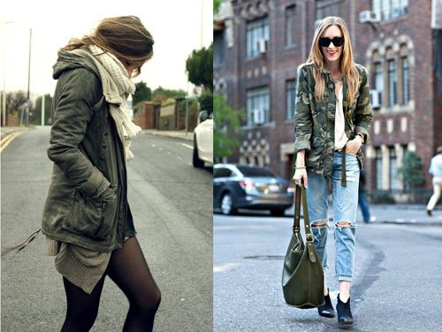 Với kiểu áo jacket này thì những tông màu trung tính như xanh rêu, đen hay xanh navy rất dễ kết hợp cùng áo len màu sáng. Dù mang phong cách mạnh mẽ của quân đội nhưng yên tâm, bạn có thể kết hợp nó với tất cả các loại trang phục, từ váy liền thân điệu đà đến quần jean trẻ trung.