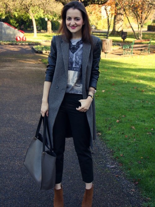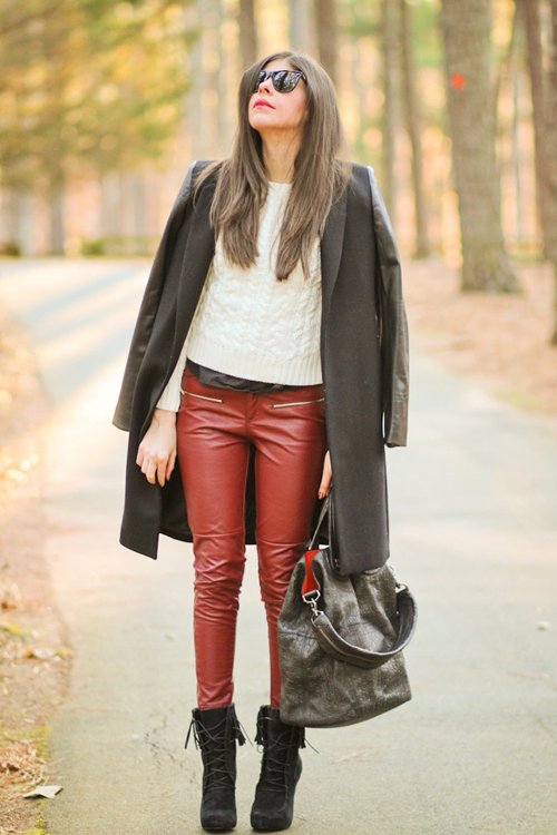 Những chị em có thân hình nhỏ nhắn có thể kết hợp áo khoác menswear cùng legging da và ankle boots cho vẻ ngoài "Newyork chic" rất năng động. Legging da và sweater hoạ tiết sẽ làm bạn trông có vẻ "có da có thịt" hơn rất nhiều.