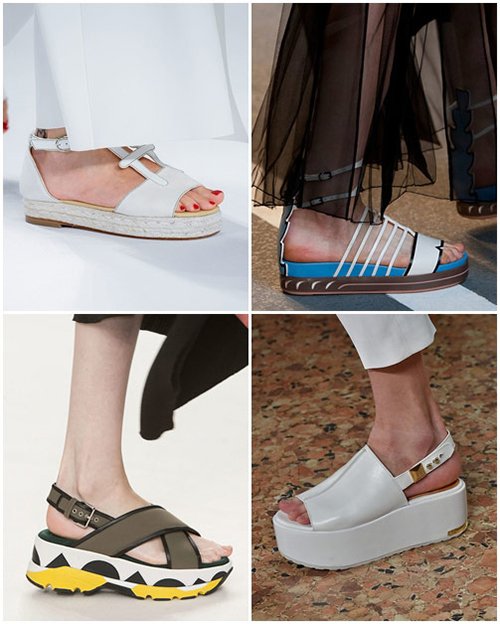 Các nhà thiết kế tập trung khai thác những mẫu giày mang tính ứng dụng cao, dễ đi lại, dễ sử dụng. từ những đôi giày flatform, giày đế thô đến xăng đan bệt thoải mái.