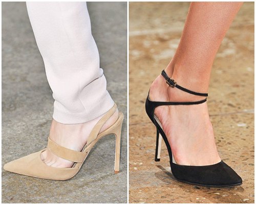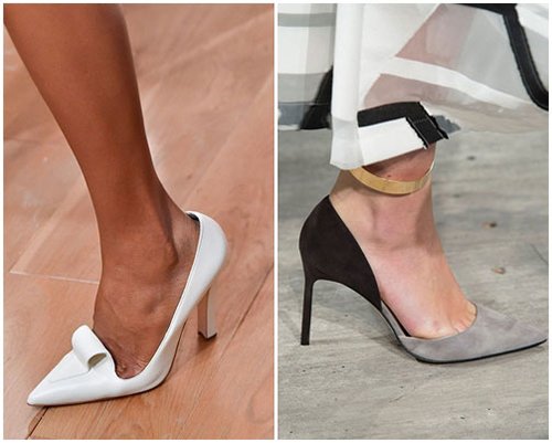 Giày mũi nhọn, giày cao gót vẫn là một điểm nhấn của thời trang xuân hè. Những phiên bản giày bít mũi của mùa xuân hè 2015 cũng rất đa dạng như giày buộc dây mắt cá, giày quai hậu, tất cả đều mang một vẻ đẹp cổ điển, rất nữ tính.