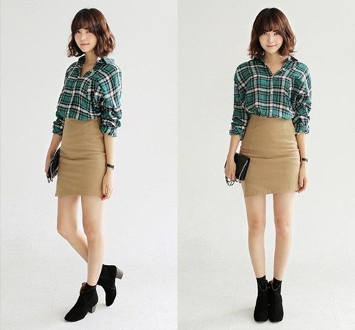 Với các quý cô trót mê sự duyên dáng, nữ tính thì bộ đôi sơmi kẻ carô kết hợp cùng chân váy bút chì và boots cổ lửng chính là "combo" hoàn hảo cho các nàng.Công thức sơmi kẻ carô + quần dài bó ống + giày cao gót là tuyệt chiêu "ăn gian" chiều cao dành cho các nàng "nấm lùn" nhờ hiệu ứng kéo dài đôi chân và tạo vóc dáng thon gọn hơn.