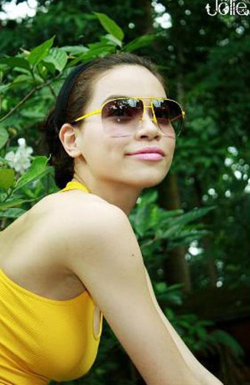 Trong những ngày nắng đẹp đi chơi với bạn bè, bạn có thể học Hà Hồ diện những mắt kính đen bản to cá tính.