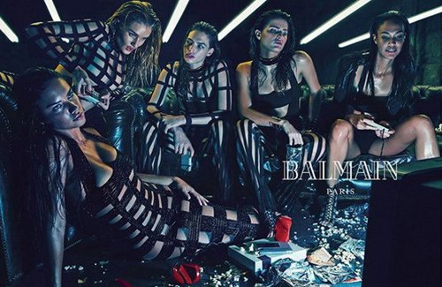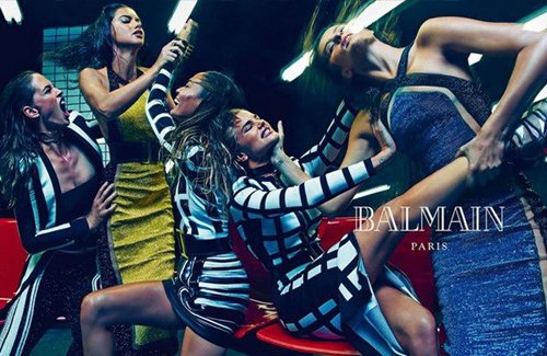 Không kém phần ấn tượng, những tấm hình thuộc chiến dịch Xuân Hè 2015 dành cho nữ giới của Balmain cũng thu hút mọi người với sự góp mặt của dàn mỹ nhân đình đám như Adriana Lima, Joan Smalls, Rosie Huntington-Whiteley, Isabeli Fontana, và Crista Cober. Bối cảnh tái hiện cuộc sống sinh hoạt gấp gáp tại những siêu đô thị với đồ ăn nhanh và trò chơi điện tử.