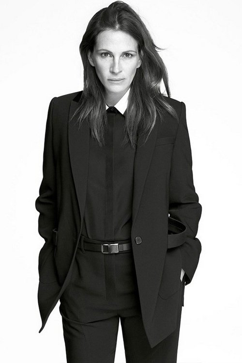 Bộ ảnh hé lộ một hình ảnh hoàn toàn khác của “người đàn bà đẹp” Julia Roberts dưới ống kính của bộ đôi nhiếp ảnh gia Mert Alas và Marcus Piggott. Bỏ đi "nụ cười tỏa nắng" đặc trưng, Julia Roberts xuất hiện mạnh mẽ và cá tính trong mẫu áo sơ mi đen cổ trắng tương phản đi kèm với bộ tuxedo đậm chất nam tính đầy quyền lực. Hình ảnh thể hiện tinh thần mạnh mẽ và hiện đại của người phụ nữ Givenchy mùa Xuân Hè 2015.