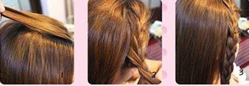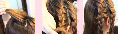 Bước 2: Tiếp tục lất phần lọn tóc trên đỉnh đầu cạnh lọn tóc vừa tết rồi và tết ba giống như bước 1. Tiếp tục làm như thế cho những lọn tóc tiết theo.
