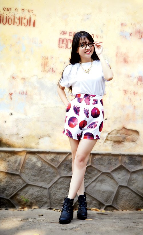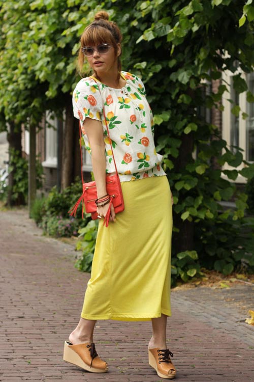 Chiếc sơ mi trái cây "tông xoẹt tông" với màu váy sẽ giúp bạn chứng tỏ đẳng cấp thời trang của mình.