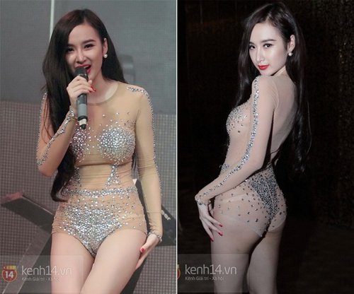 Còn dưới ánh đèn nhập nhoạng, không ít người sẽ hoảng hốt vì lầm tưởng rằng cô ca sỹ còn trong độ tuổi 17-18 này đang... nude. Bộ trang phục khiến công chúng liên tưởng ngay đến "thảm họa" Can Lộ Lộ của Cbiz. Không những thế, cũng chính "nhờ" bộ trang phục này mà Angela Phương Trinh phải đương đầu với án phạt cấm diễn trên toàn quốc.