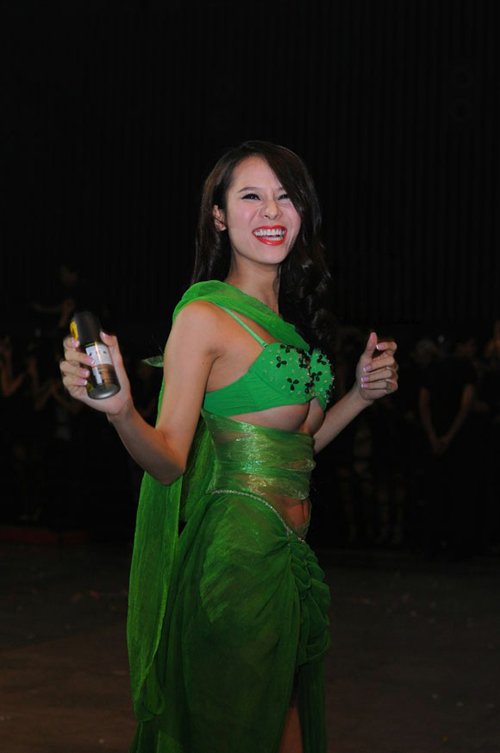 Chịu chung cảnh ngộ với Thu Minh là Thái Hà với vụ lộ gần hết vòng 1 trên sân khấu. Phần trên trang phục của cô chỉ đơn thuần là một chiếc áo lót không hơn không kém.