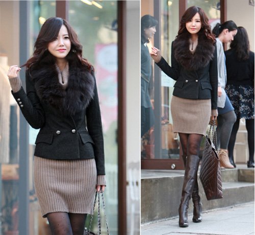Chiếc áo lông dài kết hợp cùng chân váy ngắn sexy cho các cô nàng điệu đà, ưa sự gợi cảm.