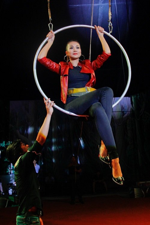 Cùng xem những hình ảnh của Thanh Hằng khi đu dây và tạo dáng trên không: