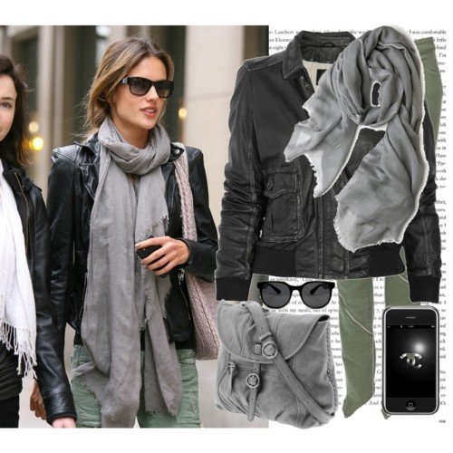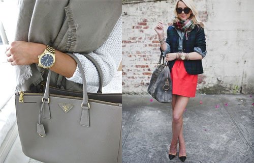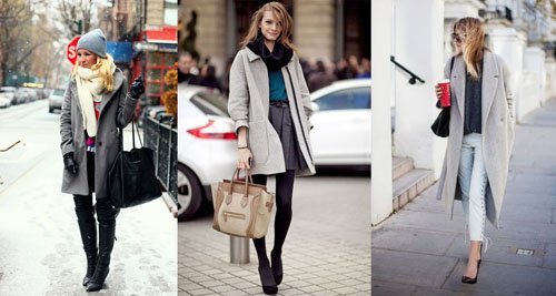 Túi màu xám được kết hợp với trang phục mùa đông.