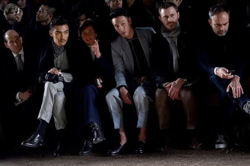 Hai vị khách mời danh dự cùng chủ tịch nhà mốt Ermenegildo Zegna ngồi hàng ghế đầu trong buổi diễn ra mắt bộ sưu tập Thu Đông 2015-2016 dành cho nam giới. (Nguồn ảnh: Ermenegildo Zegna)