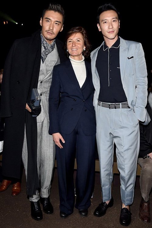 Từ trái qua: Nam diễn viên Hồ Binh trong trang phục Ermenegildo Zegna Xuân Hè 2015, chủ tịch của nhà mốt Ermenegildo Zegna - Anna Zegna, và nam diễn viên Sunny Wang cũng trong trang phục Ermenegildo Zegna Xuân Hè 2015. (Nguồn ảnh: Ermenegildo Zegna)