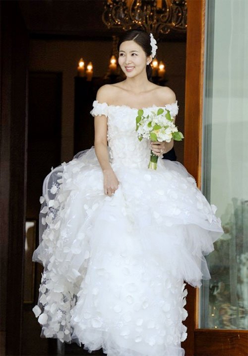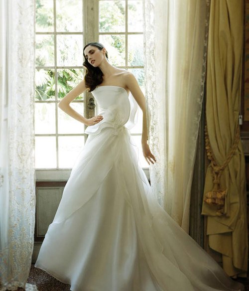 Chiếc váy cưới trễ vai cùng kiểu váy peplum sẽ giúp những cô dâu bụng "ngấn mỡ" che được tối ưu khuyết điểm.