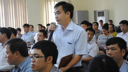 Đại diện chủ đầu tư đặt ra các câu hỏi cho lãnh đạo Sở TN&MT Hà Nội về việc cấp sổ đỏ cho nhà đất dự án.