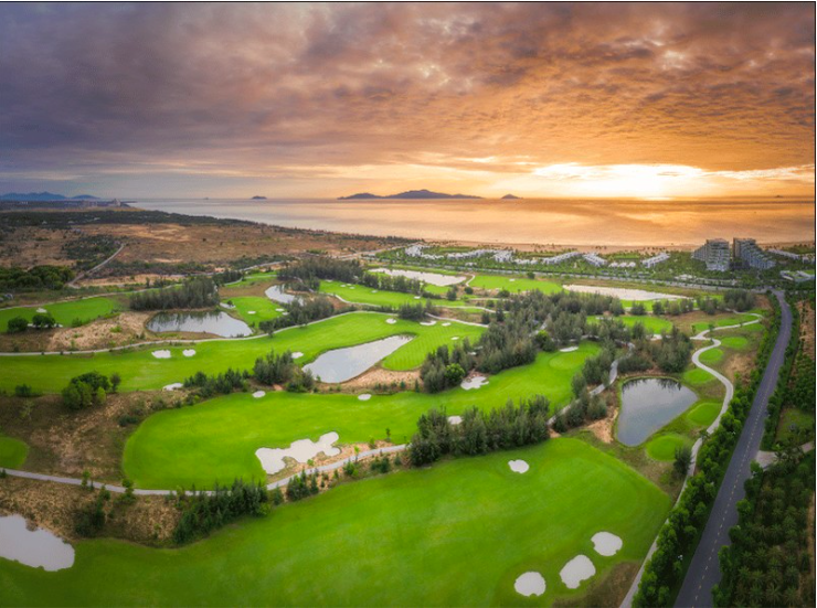 Sân golf được phủ cỏ Platinum Paspalum đạt chuẩn quốc tế, có chiều dài 6.435m với par 72 — mức gậy tiêu chuẩn để hoàn thành một hố golf hoặc toàn bộ các hố trên sân. Đây thực sự là thử thách đòi hỏi bản lĩnh và kỹ năng của mỗi golfer. Ngoài ra, sân tập sở hữu 15 làn đánh, khu locker hiện đại tích hợp xông hơi và jacuzzi, cùng nhà hàng sang trọng, đáp ứng đầy đủ nhu cầu của các golfer và du khách.