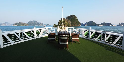 Hãy tưởng tượng ra khung cảnh một bữa tiệc noel rộn ràng, náo nhiệt trên chiếc du thuyền hạng sang, với đèn leon nhấp nháy, âm nhạc bập bùng, sôi động, một chút rượu và đồ nhắm kiểu Tây, chúng ta sẽ cùng nhảy, ca hát và khiêu vũ. Còn nếu như thấy ngột ngạt bạn có thể ra ban công tàu để hít gió, hưởng sự yên bình, thấm một chút khí lạnh mùa đông, thả lòng nhẹ nhàng với biển nước mênh mông, mọi nhọc nhằn, căng thẳng dường như tan biến, thật hiếm có thể sở hữu cảm giác thảnh thơi đến như thế. Chỉ một nơi nhưng có thể tận hưởng hai thế giới sống hoàn hảo.