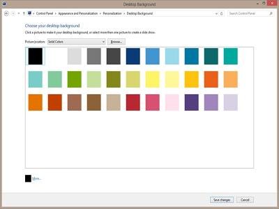 Trên Windows 7/8: bạn click chuột phải vào desktop > chọn "Personalize" > click "Desktop Background" > chọn "Solid Colors" từ menu xổ xuống > click vào biểu tượng màu đen > click nút Save Changes.
