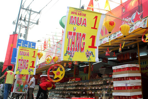 2 ngày nay, các quầy bánh trung thu trên nhiều tuyến đường lớn của TP.HCM như Nguyễn Tri Phương, Lý Thường Kiệt ,3 Tháng 2, Trường Chinh, Kha Vạn Cân... đã bắt đầu treo bảng giảm giá, khuyến mãi, dù còn cách Rằm tháng tám đến 2 tuần. Một số thương hiệu giảm giá đến 50%.