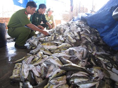 Không chỉ rùa biển, cách đây không lâu, đội Quản lý thị trường (QLTT) số 2 Quảng Ngãi tiến hành bắt giữ 7 tấn cá nóc tại cảng Mỹ Á, xã Phổ Quang, huyện Đức Phổ. Vài ngày sau, đội tiếp tục phối hợp với lực lượng chức năng phát hiện thu giữ tiếp 4 tấn cá này tại cảng Sa Huỳnh trên cùng địa bàn huyện. Khi chính quyền địa phương, ngành chức năng đem số hàng trên đi tiêu huỷ, chôn lấp thì cũng ngay đêm đó nhiều người đã ngang nhiên đến khai quật lấy trộm toàn bộ mang đi tiêu thụ?!