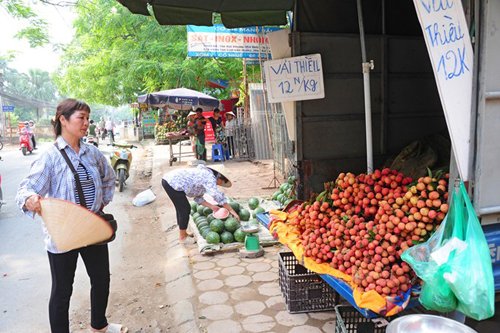 Chị Năm, nhà ở ngoại thành Hà Nội có xe tải nhỏ nên về tận vườn ở Bắc Giang để lấy vải. Giá chị nhập tại vườn là 6.000-7.000 đồng/kg, bán ra 12.000 đồng/kg. Trung bình một ngày, chị bán được 2-3 tạ. Khách đông, lãi cao hơn so với người bán hàng rong, nhưng theo chị Năm, chi phí xe cộ, mãi lộ, chỗ đậu ô tô không có, nên tính ra cũng không được bao nhiêu.