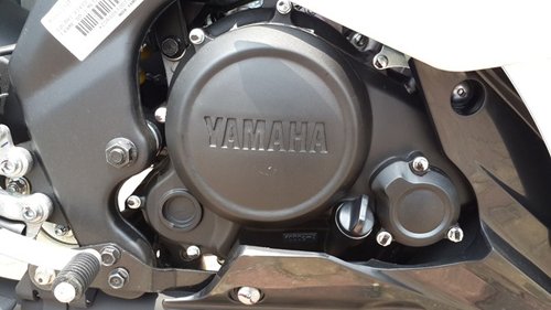 R15 2014 có khối động cơ 4 thì dung tích 150cc, làm mát bằng dung dịch. Hệ thống phun xăng điện tử cho hiệu năng tốt hơn, tiêu hao nhiên liệu ít hơn, nâng mã lực từ 17 lên 18 mã lực so với phiên bản cũ, tỷ số nén là 10,4 :1. Khối động cơ này có thể sản sinh ra 18 mã lực tại vòng tua 8500 rpm và momen cực đại giữ nguyên là 15 nm.